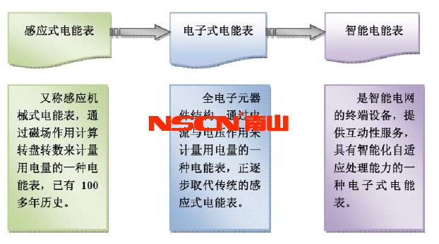 電工儀器儀表行業(yè)總體屬于完 全競爭行業(yè)。電能表作為電工儀器儀表中的一個重要產(chǎn)品,是用于電力系統(tǒng)發(fā)電、輸電、變電、配電、用電等各個環(huán)節(jié)電能計量的法定計量器具。電能表產(chǎn)品的競爭 格局隨著電能表產(chǎn)品本身的升級換代而變化,電能表的發(fā)展經(jīng)歷了感應(yīng)式電能表、電子式電能表與智能電能表三個階段,如下圖所示: