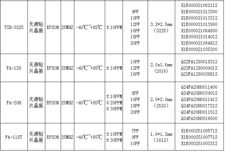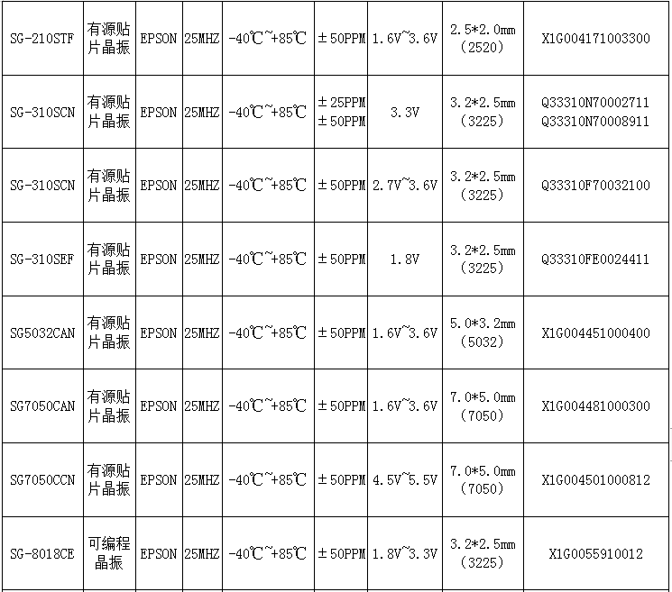 通過這個(gè)表格,我們可以很清晰的看到25MHz晶振的工作溫度,封裝尺寸以及工作電壓,這樣就很容易判斷出應(yīng)該用哪一個(gè)型號亦或者到底使用25m無源晶振還是25m有源晶振,今天就分享這些給大家,南京南山電子作為愛普生官方授權(quán)中國區(qū)代理商,歡迎大家來電垂詢,或者網(wǎng)上訂購!