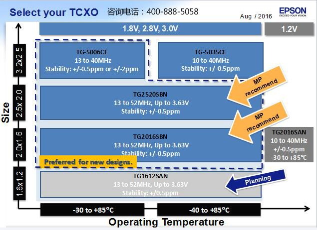 雖然說溫補晶振既無恒溫電路,也無感溫頭,焊接歪曲是有可能的,但也不是這樣粗制濫造的啊,這還是高精度元件嗎?愛普生溫補晶振相比其他的在-40~﹢85℃下穩(wěn)定提供0.5ppm的高精度,這樣子的明顯是市場上流出的山寨貨,大家一定要注意,切勿貪小便宜吃大虧,下面我們來看下愛普生溫補晶振幾款主力型號選型示意圖: