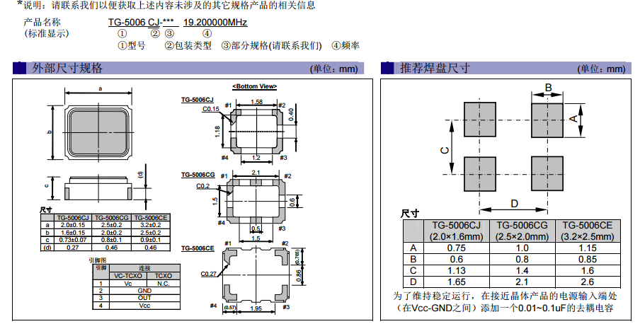 TG-5006CJ,TG-5006CG,TG-5006CE溫補晶振該如何識別?