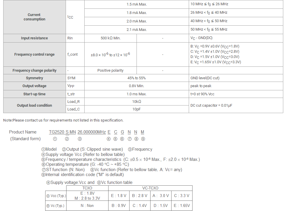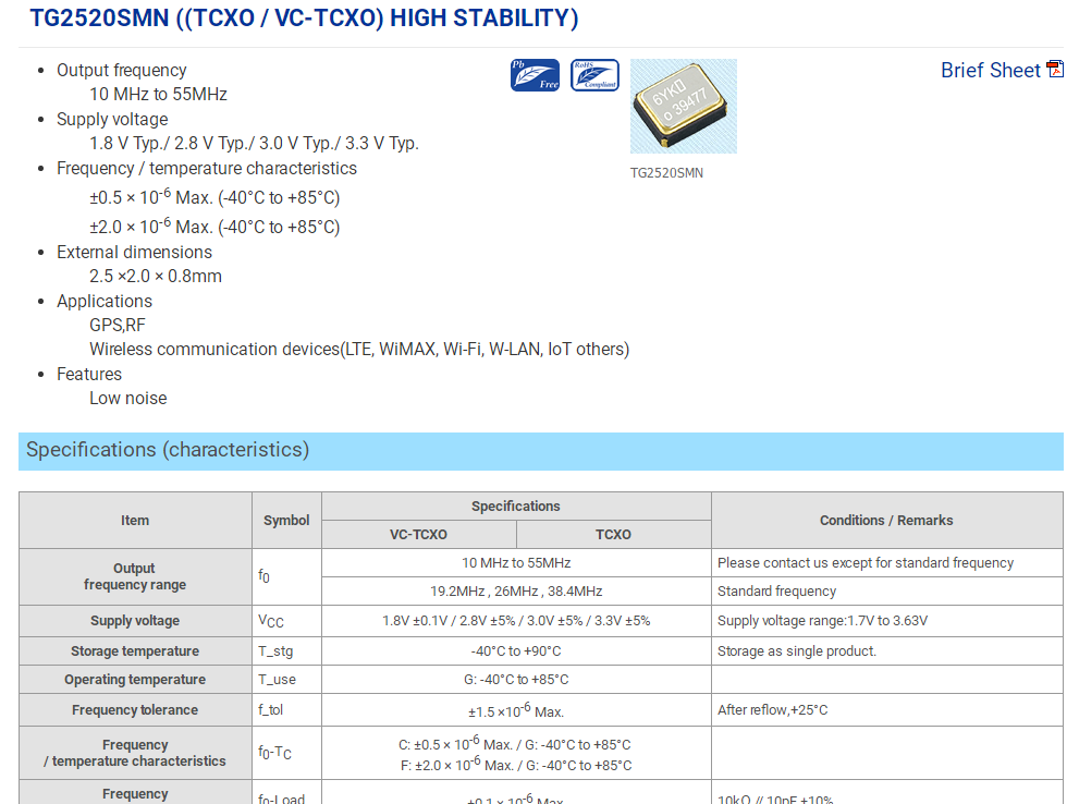 如上圖規(guī)格書所示:TG2520SMN,16.368MHz,MCGNNM,X1G005421030100 其他具體參數(shù)可以很容易查到,供各位客戶選型參考。當然除了上述TG2520SMN,X1G005421030100,16.368MHz,MCGNNM之外 ,作為愛普生晶振在中國大陸地區(qū)授權(quán)的核心代理商,南京南山半導體提供EPSON全系列溫補晶振產(chǎn)品,點網(wǎng)站右上方在線購買,或者去我們南山電子的某寶店——南山E店選型訂貨。