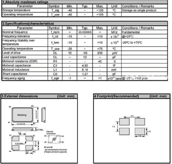 TSX-3225 30MHz X1E000021029500 具體規(guī)格參數(shù):