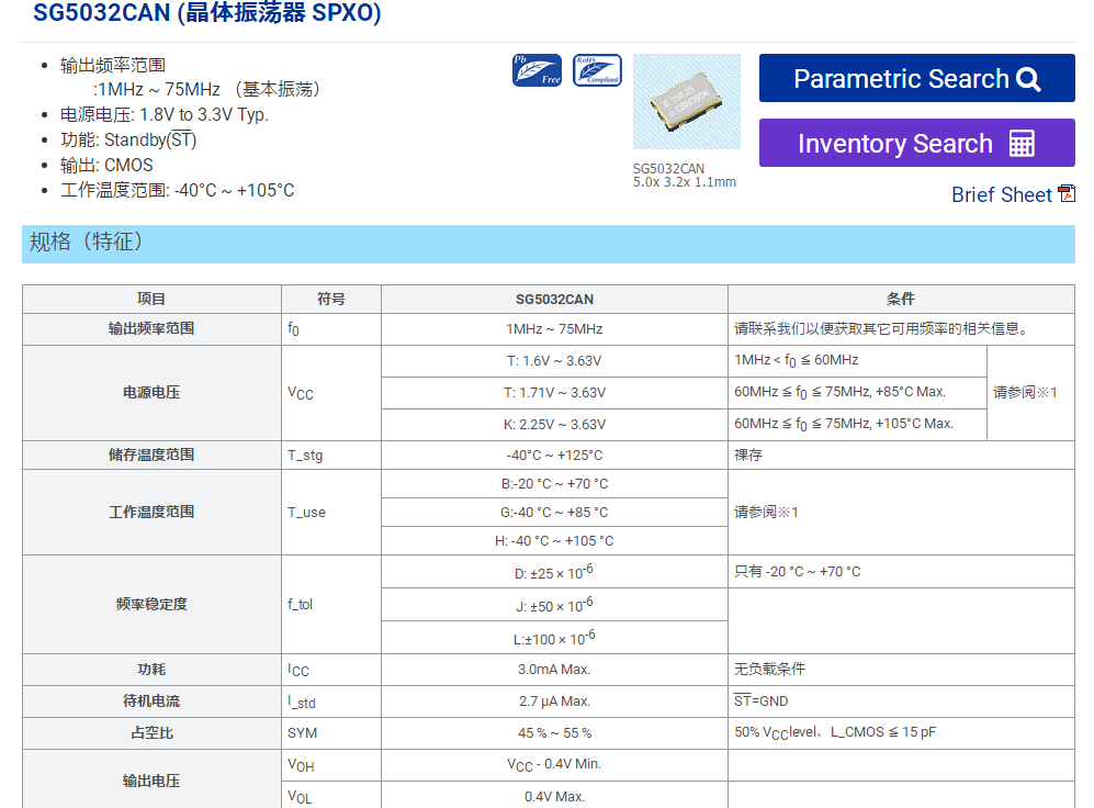 SG5032CAN貼片有源晶振的具體參數(shù)如上圖所示,當(dāng)然除了上述TSG5032CAN X1G004451xxxx00之外 ,作為愛普生晶振在中國大陸地區(qū)授權(quán)的核心代理商,南京南山半導(dǎo)體有限公司提供EPSON全系列有源晶振產(chǎn)品,點網(wǎng)站右上方在線購買,或者去我們南山電子的某寶店——南山E店選型訂貨。