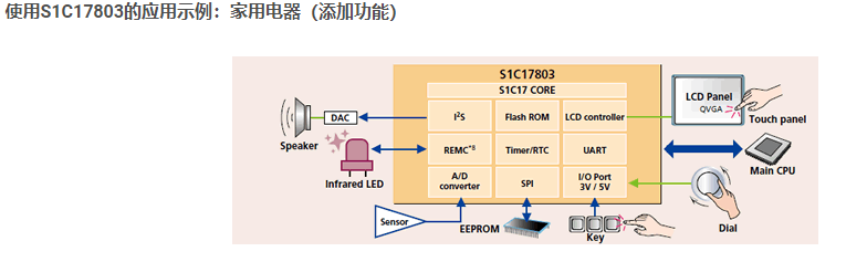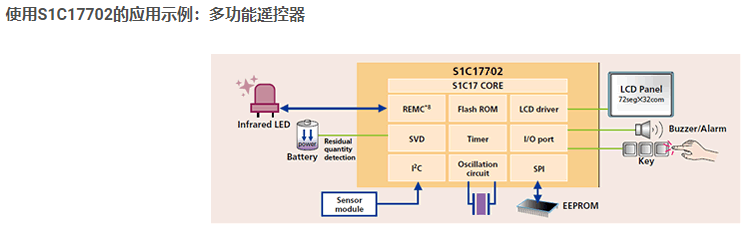 16位微處理器之S1C17000 / 500系列,這是一款低功耗16位微處理器,集成了ROM,RAM,遠(yuǎn)程控制器電路,各種I / F和定時器功能。它適用于便攜式設(shè)備內(nèi)置的傳感器系統(tǒng)。