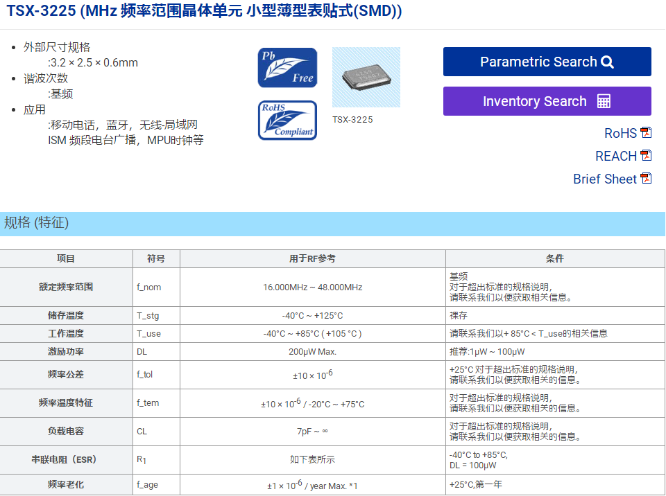 今天南山電子小編給大家介紹兩款晶振,TSX-3225,26MHz,9PF,X1E0000210147TSX-3225,26MHz,12PF,X1E0000210149。說到3225無源晶振那么就不得不提下TSX-3225,因?yàn)楦呔?a href='http://www.kabutosangyo.com/epson/' target='_blank'>貼片晶振TSX-3225幾乎是愛普生無源晶振中應(yīng)用最廣泛的,而且可以說是性價(jià)比極高的,業(yè)內(nèi)人都知道,雖然愛普生已經(jīng)開發(fā)出2520甚至超小尺寸2016無源晶振,但是尺寸更小,也代表著制造工藝越發(fā)繁瑣成本的增高,現(xiàn)在很多便攜式產(chǎn)品需要尺寸小,高性能,壽命長(zhǎng),價(jià)格適中的貼片晶振,3225已經(jīng)相對(duì)而言屬于小尺寸晶振,可以滿足便攜式設(shè)備的要求,價(jià)格也比2520,2016要低,最最厲害的是,3225無源晶振的成本比5032的也低,所以說TSX-3225是性價(jià)比極高的選擇。今天介紹的TSX-3225,26MHz,9PF還有TSX-3225,26MHz,12PF都是比較常用的兩顆料,TSX-3225,26MHz,9PF對(duì)應(yīng)的料號(hào)為X1E0000210147,精度為10PPM,工作溫度:-40℃ ~ +85℃。TSX-3225,26MHz,12PF對(duì)應(yīng)的料號(hào)為X1E0000210149,工作溫度:-40℃ ~ +85℃,精度隨著溫度的改變可以從10PPM到20PPM,X1E0000210147X1E0000210149都屬于高精度無源晶振,可以用于移動(dòng)電話,藍(lán)牙,無線-局域網(wǎng),ISM 頻段電臺(tái)廣播,MPU時(shí)鐘等領(lǐng)域。下面南山電子就把TSX-3225的規(guī)格書分享給大家