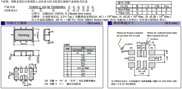 TG5032CGN,TG5032SGN壓控溫補(bǔ)晶振該如何識(shí)別?