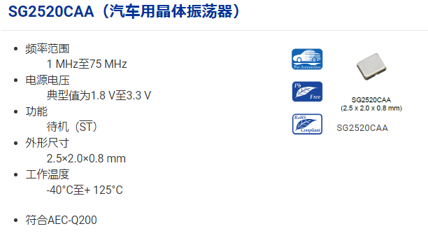 具有CMOS輸出,高速響應(yīng)特點(diǎn)的新型汽車級(jí)晶振SG2520CAA