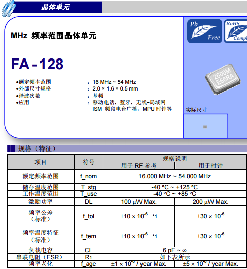 2016晶振之適用于藍(lán)牙的2016無源晶振:FA-128