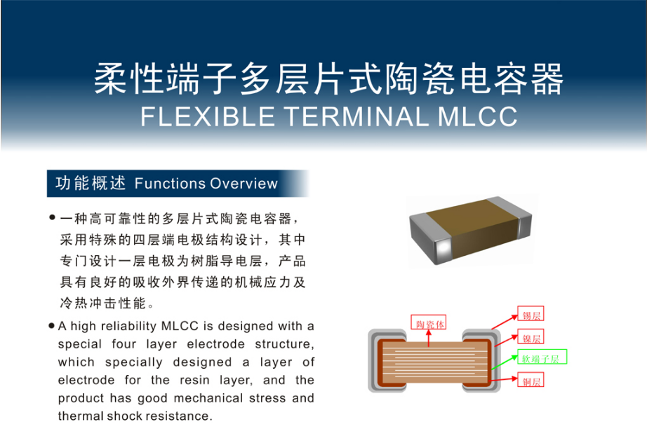 大家好,今天來跟大家聊聊具有柔性防撕裂功能適用于照明產(chǎn)品LED燈的軟端子電容。也可以叫做LED燈電容或者軟燈條電容。這款軟端子電容具有防撕裂的功能,所以業(yè)內(nèi)人也常常稱之為LED燈用柔性電容。LED燈已經(jīng)成為一個高速發(fā)展的節(jié)能燈具品類。風(fēng)華高科為LED燈、汽車電子、高溫環(huán)境、電源線路、TFT-LCD逆變器對貼片電容使用環(huán)境要求較高的領(lǐng)域?qū)iT研發(fā)生產(chǎn)了專用貼片電容等產(chǎn)品,其主要特點是通過軟端子替代了常規(guī)貼片電容的相對剛性的端子電極,從而降低陶瓷貼片電容短路風(fēng)險。那么風(fēng)華的軟端子電容的規(guī)格參數(shù)有哪些特性呢?為何風(fēng)華的軟端子電容可以適用于LED燈等照明產(chǎn)品呢?下面與風(fēng)華高科攜手共進(jìn)十七年的南山電子就來為您一一解答: