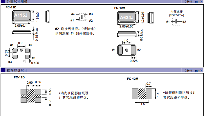 市場(chǎng)上最熱門的FC-12M有以下三種:FC-12M 12.5PF 32.768K,F(xiàn)C-12M 32.768KHZ 7PF,F(xiàn)C-12M 32.768kHz 6pF,FC-12M已經(jīng)不能算是最新的無(wú)源晶振,但是依然廣泛運(yùn)用在很多便攜式電子產(chǎn)品上,那么這是為什么呢?因?yàn)槭袌?chǎng)上需求量很大的通常是32.768KHz,小尺寸的無(wú)源晶振,而FC-12M體積為2.0mm*1.2mm,所以統(tǒng)稱為2012無(wú)源晶振FC-12M,有一說一,目前國(guó)內(nèi)市場(chǎng)在制作這樣的32.768K小尺寸晶振上技術(shù)確實(shí)還有欠缺,因此采購(gòu)時(shí)一般還是要進(jìn)口晶振,而在32.768k晶振上,愛普生晶振是絕對(duì)的佼佼者,這個(gè)無(wú)需多言,大家自行百度,真金不怕火煉,南山電子作為愛普生晶振官方授權(quán)中國(guó)地區(qū)核心代理商,長(zhǎng)期供應(yīng)FC-12M現(xiàn)貨,值得注意的是,很多人來找我們的客戶經(jīng)常犯一個(gè)錯(cuò)誤,就是當(dāng)FC-12D缺貨的時(shí)候,直接想當(dāng)然購(gòu)買FC-12M替換,雖然他們參數(shù)大致相同,而且溫度范圍都可以達(dá)到-40℃~+85℃,但是FC12D比FC-12M更薄,而且FC-12M是兩腳的,F(xiàn)C-12D是四腳金屬面,下面給大家看下這兩者規(guī)格書對(duì)比: