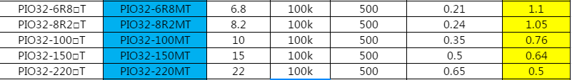 PIO32-100MT 電感10uh 測試頻率100kHz 直流電阻MAX 0.35Ω 飽和電流0.76A