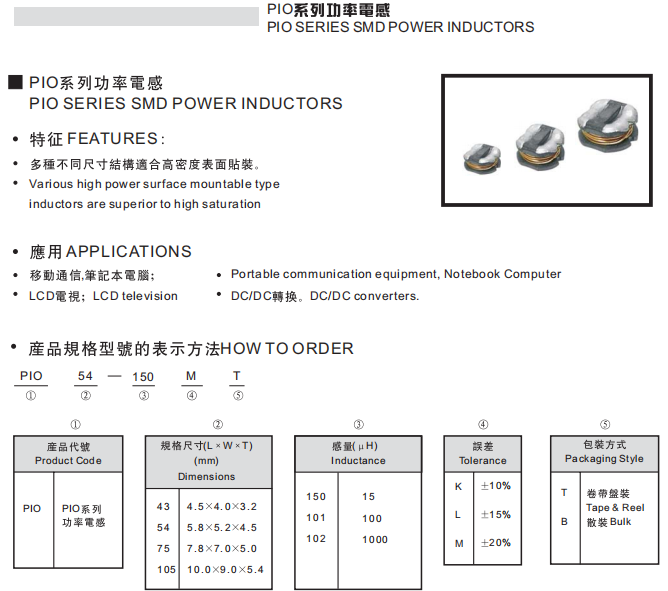 PIO貼片功率電感,PIO功率電感規(guī)格選型資料