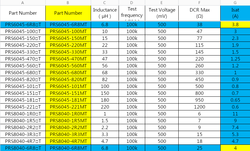6.8uh電感是比較常見的電感之一,而6.8uh功率電感更是市場上最常用的功率電感之一。其中一體成型屏蔽功率電感6.8uh就很熱門??炷甑琢耍覀?strong>南山電子在分析產(chǎn)品出貨情況,發(fā)現(xiàn)6.8uh功率電感銷量較大的是PRS8040-6R8MT,說到這款6.8uh功率電感,讓我想到前段時間一個事兒,有一個客戶一直用PRS8040-6R8MT,我們廣東的一位客戶,一直都用PRS8040-6R8MT,也是因為我們6.8uh功率電感前陣子出貨較多,他們又上個月在已經(jīng)給他們備貨了情況下,新增70K的貨,因為他們是終端,有好幾個技術人員,所以我們就讓他們根據(jù)規(guī)格書換其他的6.8uh功率電感,他們選擇了PRS6045-6R8MT,我們就發(fā)貨了,可是發(fā)貨后,他們采購跟我們這里溝通將6045退了回來,原來他們一個新來的技術搞錯了,PRS6045-6R8MT電流不夠,只能等我們調(diào)貨原來的6.8uh功率電感。接下來南山半導體就來給你分析下原因,同時告訴大家如何選型: