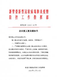 為支持重點客戶的有序生產(chǎn),南京南山半導(dǎo)體有限公司于2020年2月13日收到南京市新街口管理委員會(新管委)新型冠狀病毒肺炎疫情 防控工作指揮部通知,在2月14日復(fù)工。 暫定工作時...