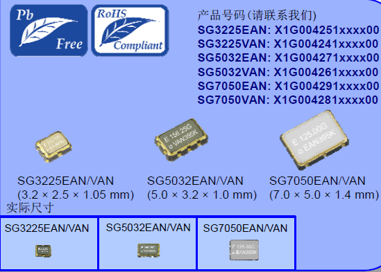 SPXO (32.768kHz) 型號 額定頻率 [kHz] 頻率公差 [x10 -6 ] 頻率溫度特征 標(biāo)準(zhǔn)包裝 SG-3030LC 32.768 5±23 +10 to -120 / -20°C to +70°C 1000 pcs/ Reel "L" SG-3030JF SG-3030JC SG-3040LC SG-3040JC SPXO (MHz) 型號 額定頻率...