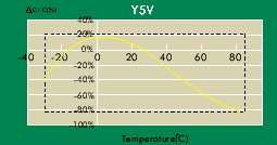 作溫度下,容量會有比較明顯的變化,我們舉Y5V為例說明: