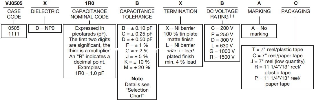 2 電容值范圍:0505:1.0pF-100pF