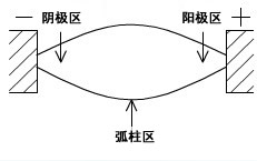 弧柱區(qū)呈電中性,它是由分子、原子、受激的原子、正離子、負(fù)離子及電子所組成,其中帶正電荷的離子與帶負(fù)電荷的離子幾乎相等,所以又稱為等離子體。帶電的粒子在等離子體定向移動(dòng),基本上不消耗能量,所以才能夠在低電壓條件下,傳輸大電流。傳輸電流的主要帶電粒子是電子,大約占帶電粒子總數(shù)的99.9%,其余為正離子。 因?yàn)殛帢O區(qū)和陽(yáng)極區(qū)的長(zhǎng)度極短,所以可以認(rèn)為弧柱區(qū)長(zhǎng)度為電弧長(zhǎng)度?;≈鶇^(qū)的電場(chǎng)強(qiáng)度較低,通常只有5~10V/cm。