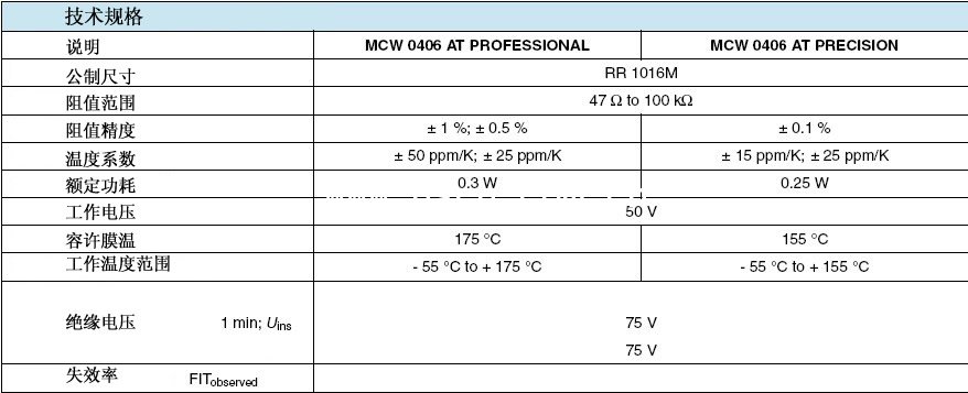 Vishay 2013年最新前沿產(chǎn)品-MCW 0406 AT(薄膜電阻)