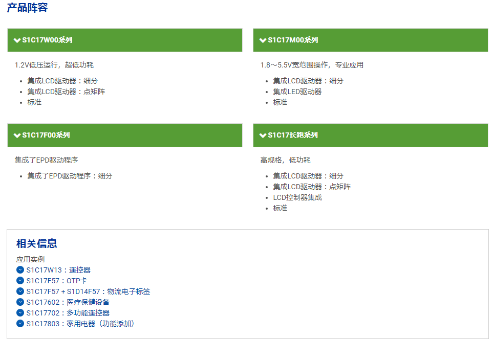 愛普生MCU產(chǎn)品的家族成員,并且?guī)透魑豢蛻舴治鱿聻楹?strong>愛普生MCU芯片的分類規(guī)格和應(yīng)用案例: