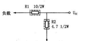 因熔斷電阻器是具有保護(hù)功能的電阻器,選用時(shí)應(yīng)考慮其雙重性能。根據(jù)電路的具體要求選擇其阻值和功率等參數(shù),既要保證它在過(guò)電流時(shí)能快速熔斷,又要保證它在正常條件下,能長(zhǎng)期穩(wěn)定的工作。在更換此電阻時(shí),與原來(lái)的電阻值和額定功率(瓦數(shù))絕對(duì)要相同,電阻值及功率過(guò)大或過(guò)小,均起不到保護(hù)作用。下圖中的電阻用的是熔斷電阻器,其作用是:從電源分配到各部分電路的連接電阻,作為短路保護(hù)(起保險(xiǎn)管作用)的電阻。