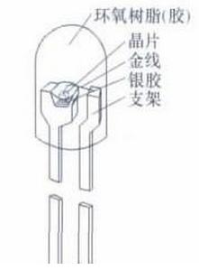 發(fā)光二極管簡(jiǎn)稱為L(zhǎng)ED,組成LED的主要材料包括:管芯、粘合劑、金線、支架和環(huán)氧樹(shù)脂。