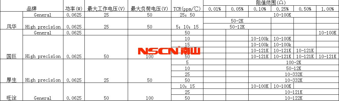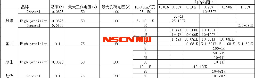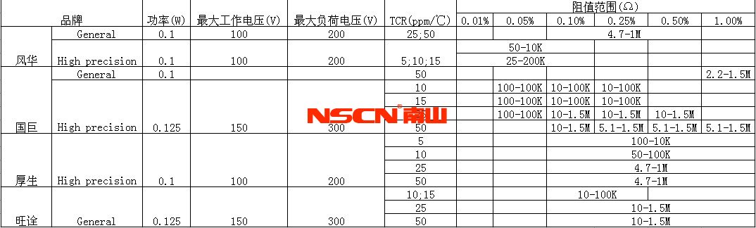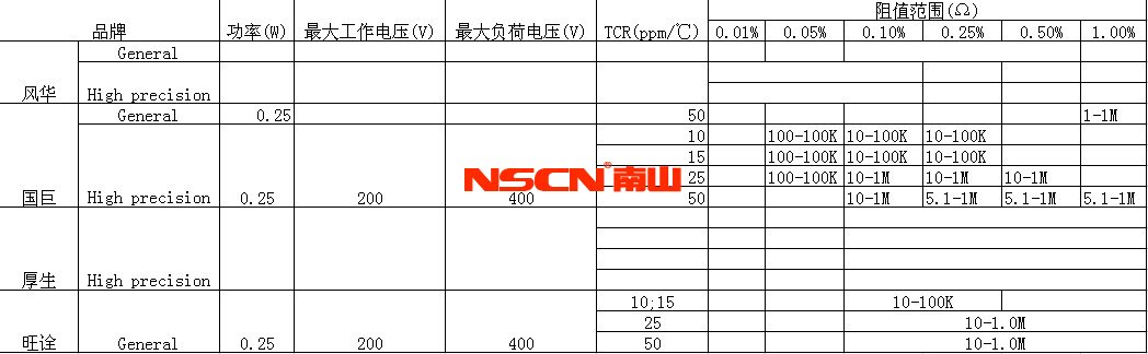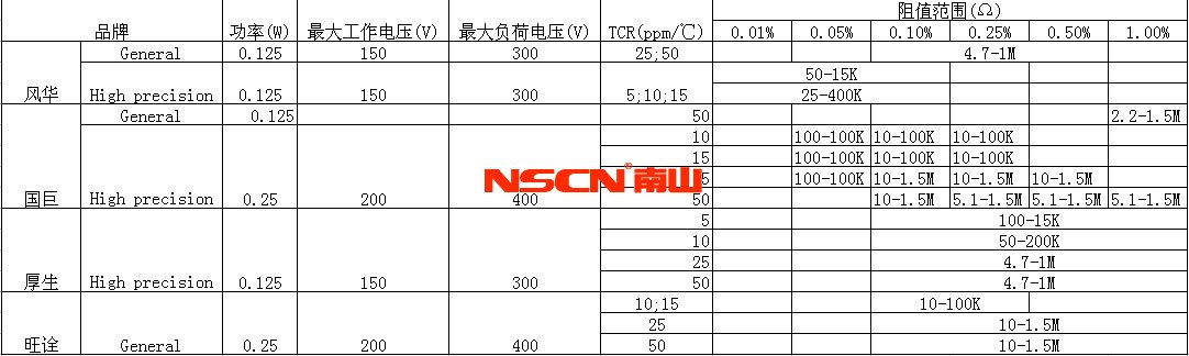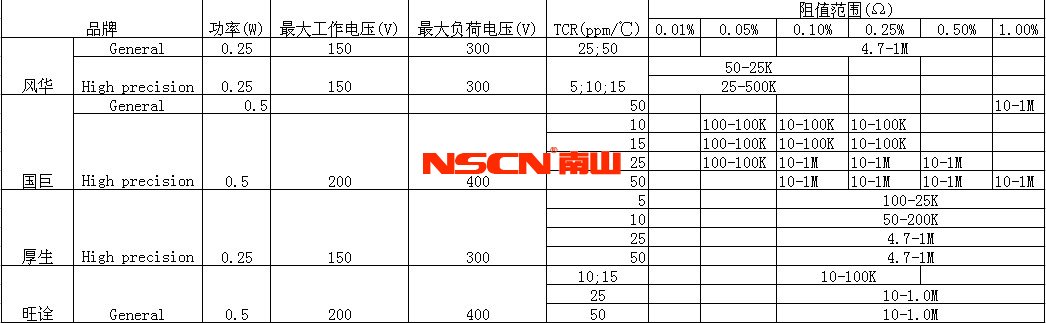 幾大電阻廠家的薄膜電阻規(guī)格比較