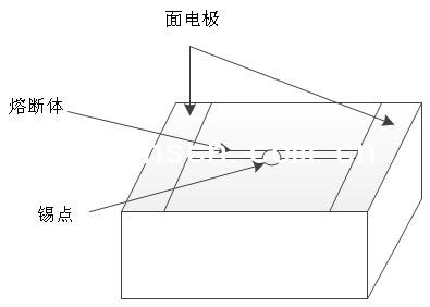 熔斷體為銀漿印刷,采用銀與鈀混合的銀漿漿料,抗腐蝕,且抗浪涌能力好(鈀的含量)。